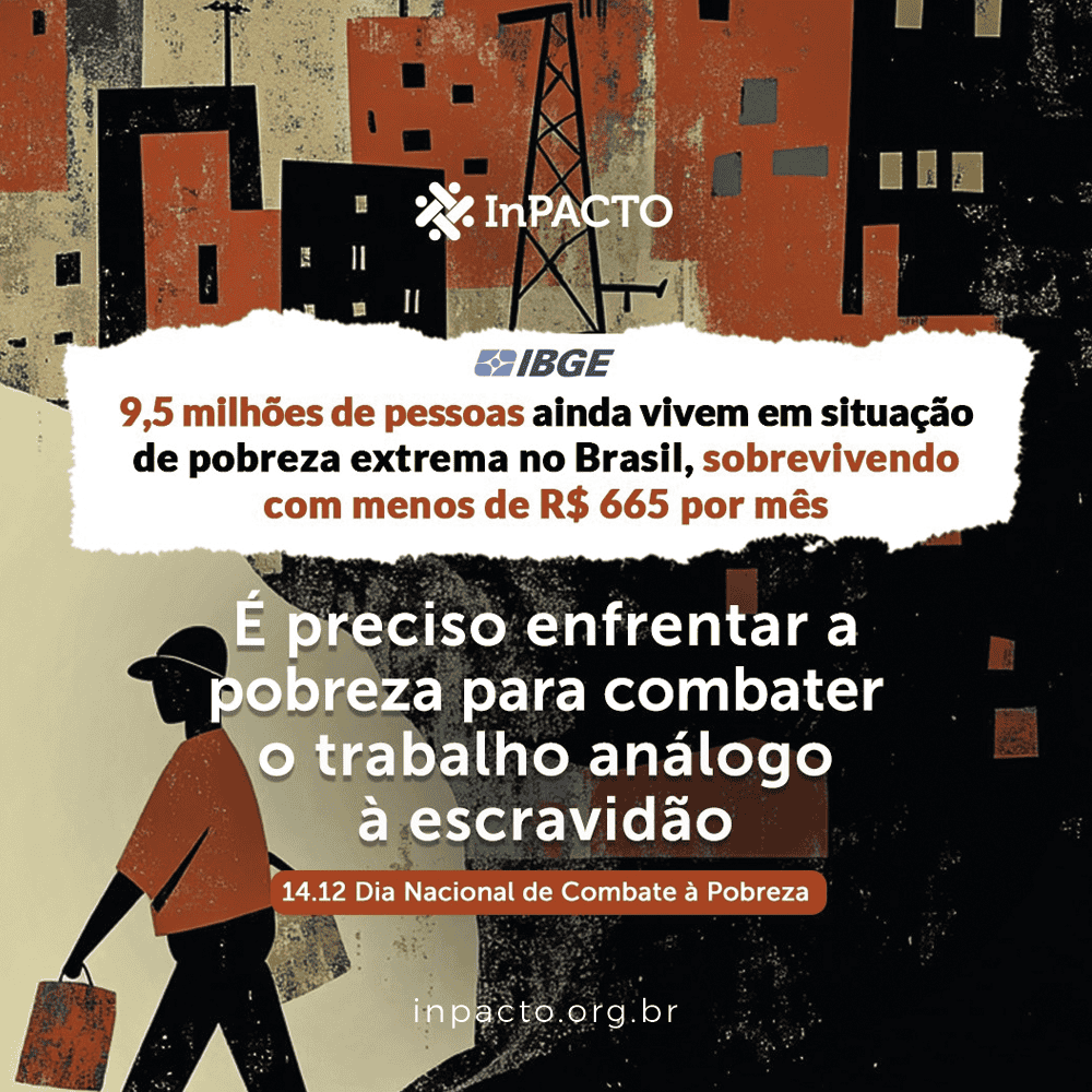 14.12 Dia Nacional de Combate à Pobreza 9,5 milhões de pessoas ainda vivem em situação de pobreza extrema no Brasil, sobrevivendo com menos de R$ 665 por mês (dados do IBGE) É preciso enfrentar a pobreza para combater o trabalho análogo à escravidão No Dia Nacional de Combate à Pobreza, refletimos sobre um dos maiores […]