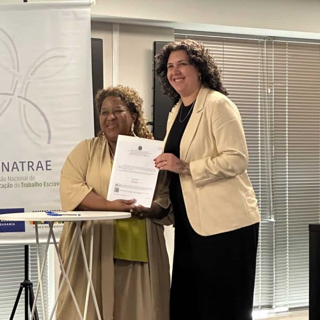 A cerimônia foi realizada no auditório da Controladoria-Geral da União (CGU), em Brasília, durante evento promovido pelo Ministério dos Direitos Humanos e da Cidadania, com a participação da ministra Macaé Evaristo e de representantes do Ministério do Trabalho e Emprego e da Organização Internacional do Trabalho (OIT), representada por Vinícius Pinheiro, entre outras lideranças.